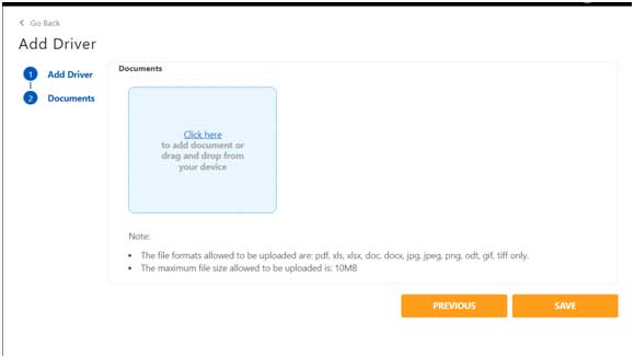 • Save & Next: Save the current record and move to uploading a document for the same driver.