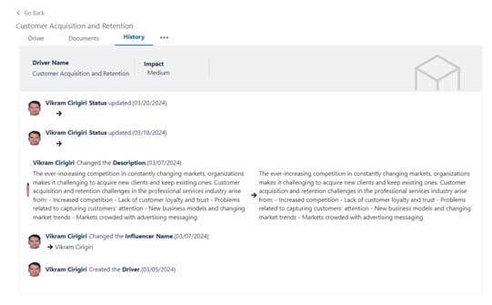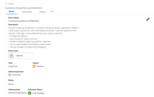 • Impact: The impact of the driver on the organization.