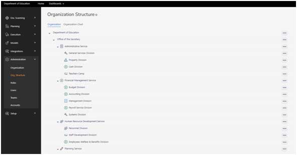 • After changes are made, revisit the ‘Org. Structure’ page to see the updated hierarchy.
