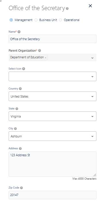 • Select the appropriate type for the unit: ‘Management’, ‘Business Unit’, or ‘Operational’.