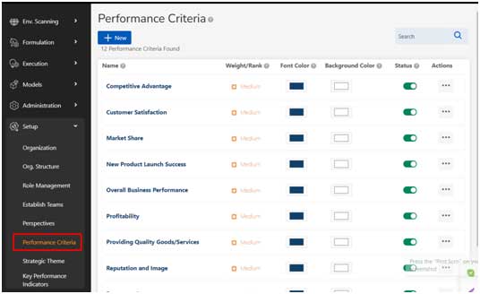 • Once the desired performance Criteria is identified, click on the Action (…) Icon